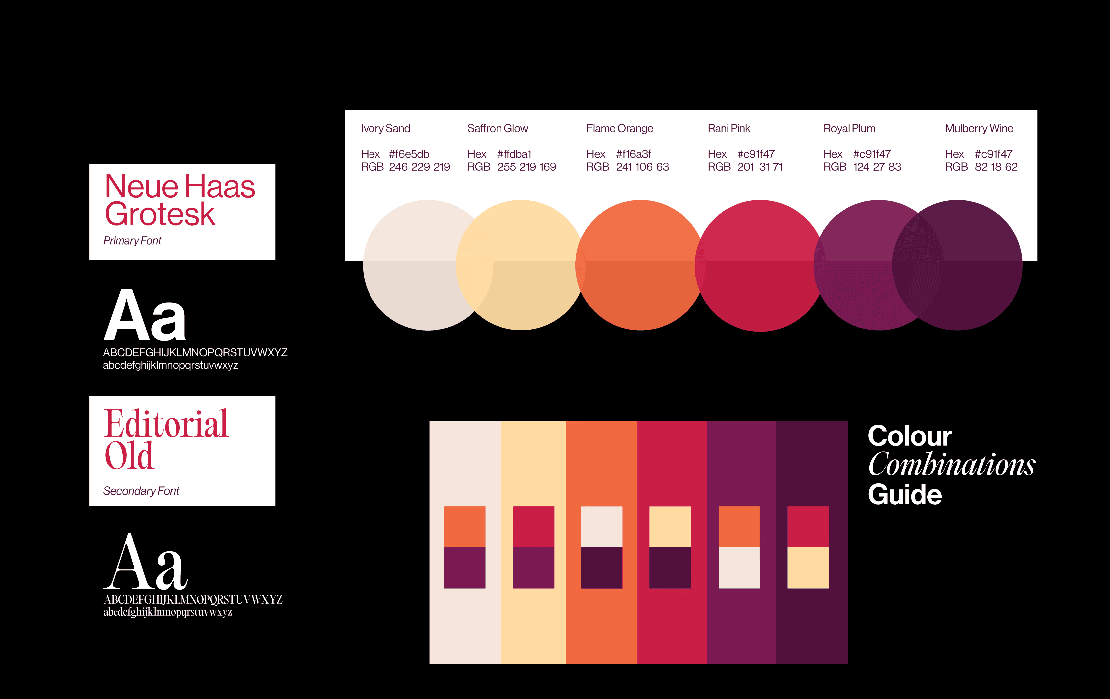 A vibrant yet grounded palette creating a balance between energy, warmth, and depth.